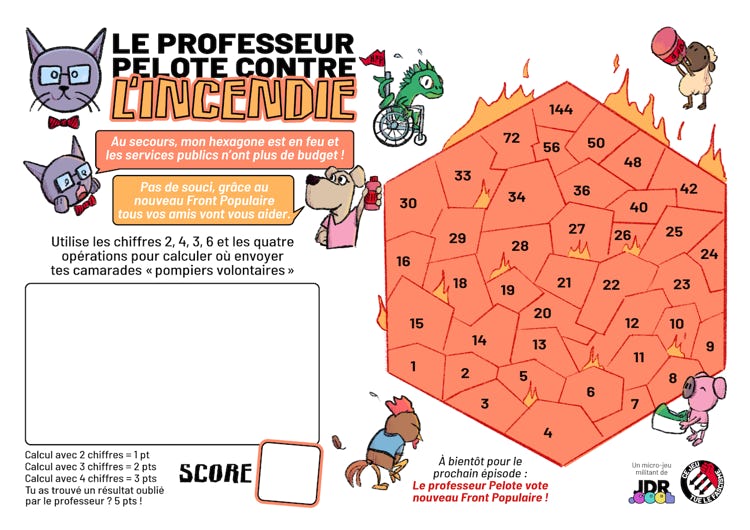 En attendant de pouvoir voter contre le fascisme, JdR.cool te propose au passage un tout petit jeu : clique sur cette vignette pour aider le professeur Pelote à éteindre l’incendie qui ravage son hexagone !